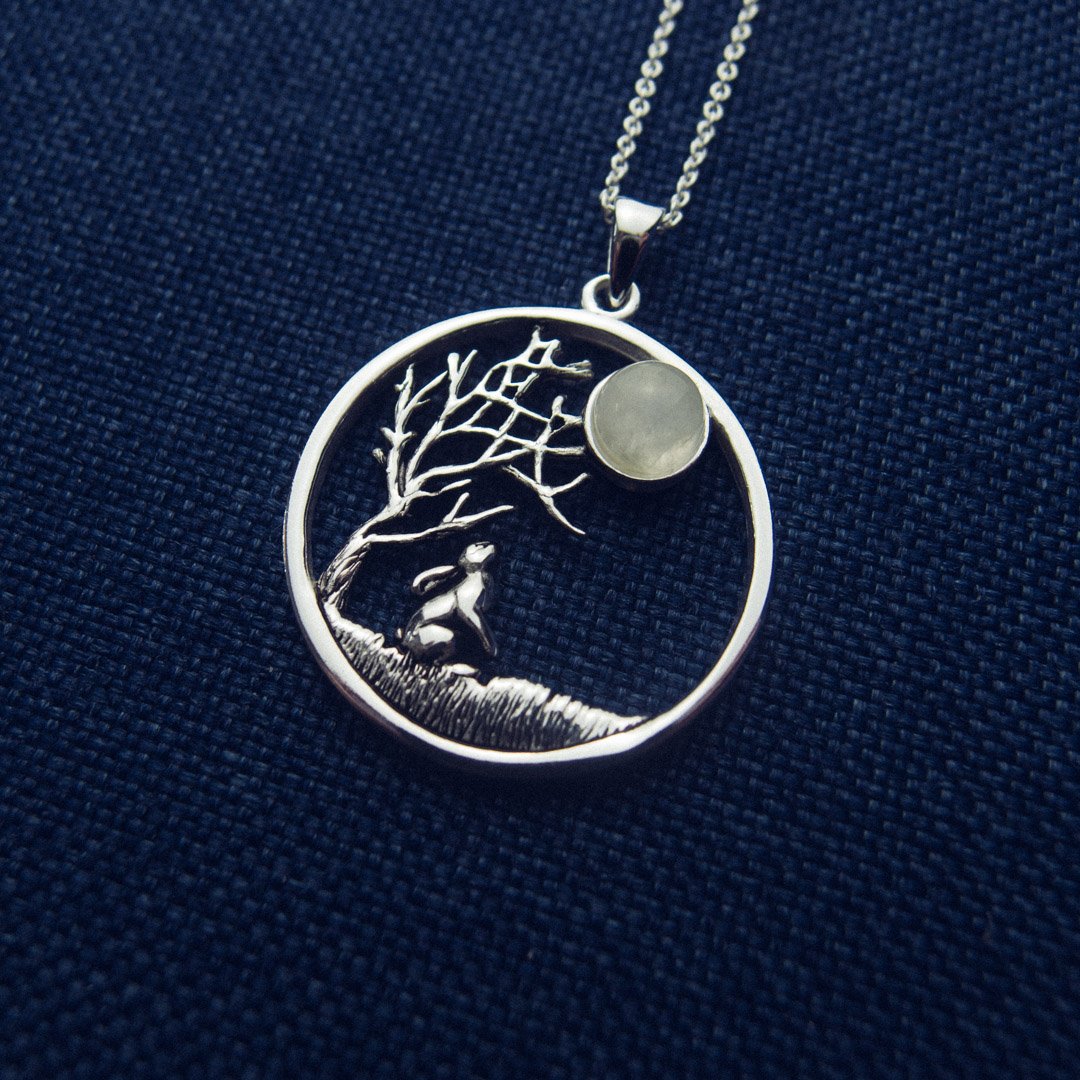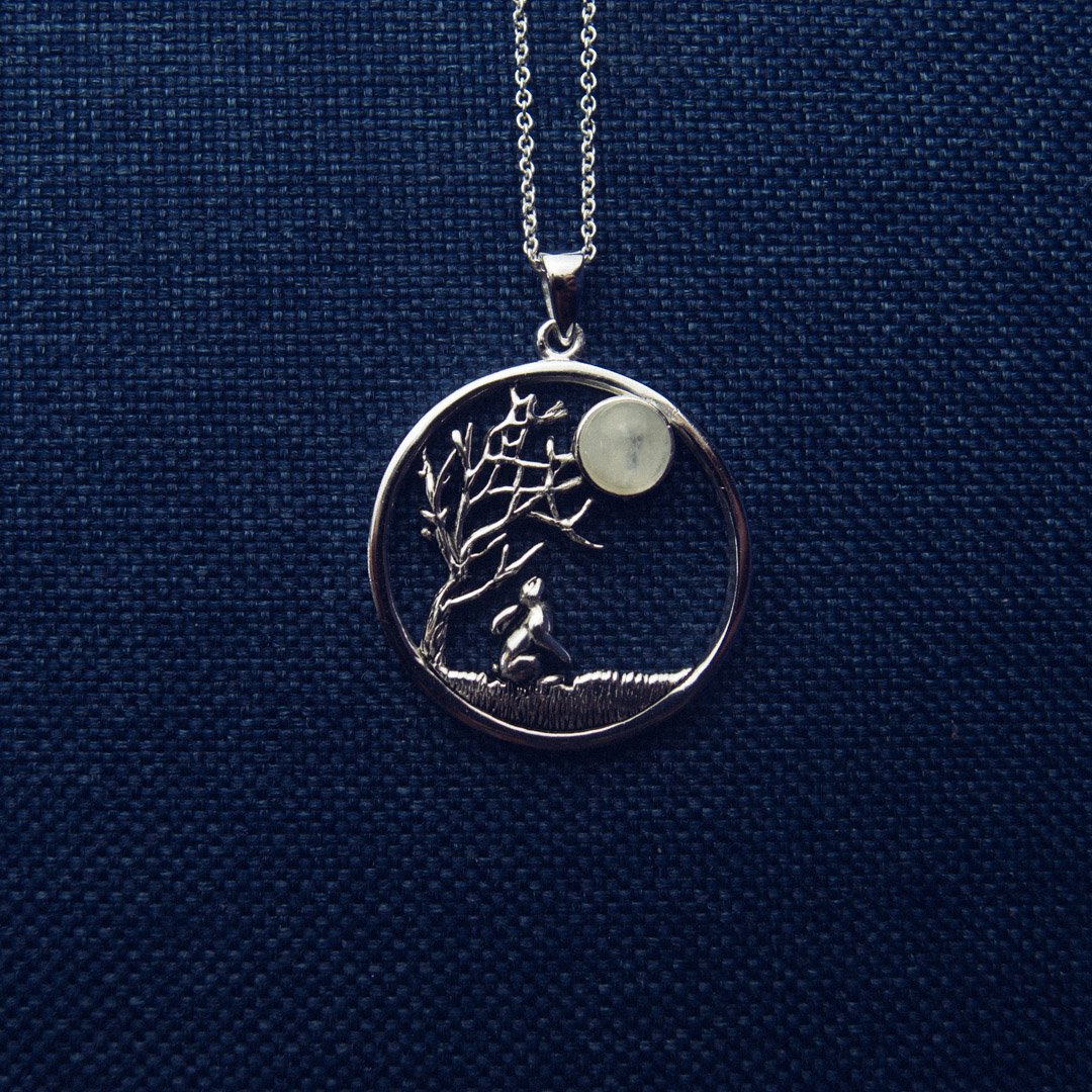 A real silver moon-gazing hare necklace. Full listing coming soon..