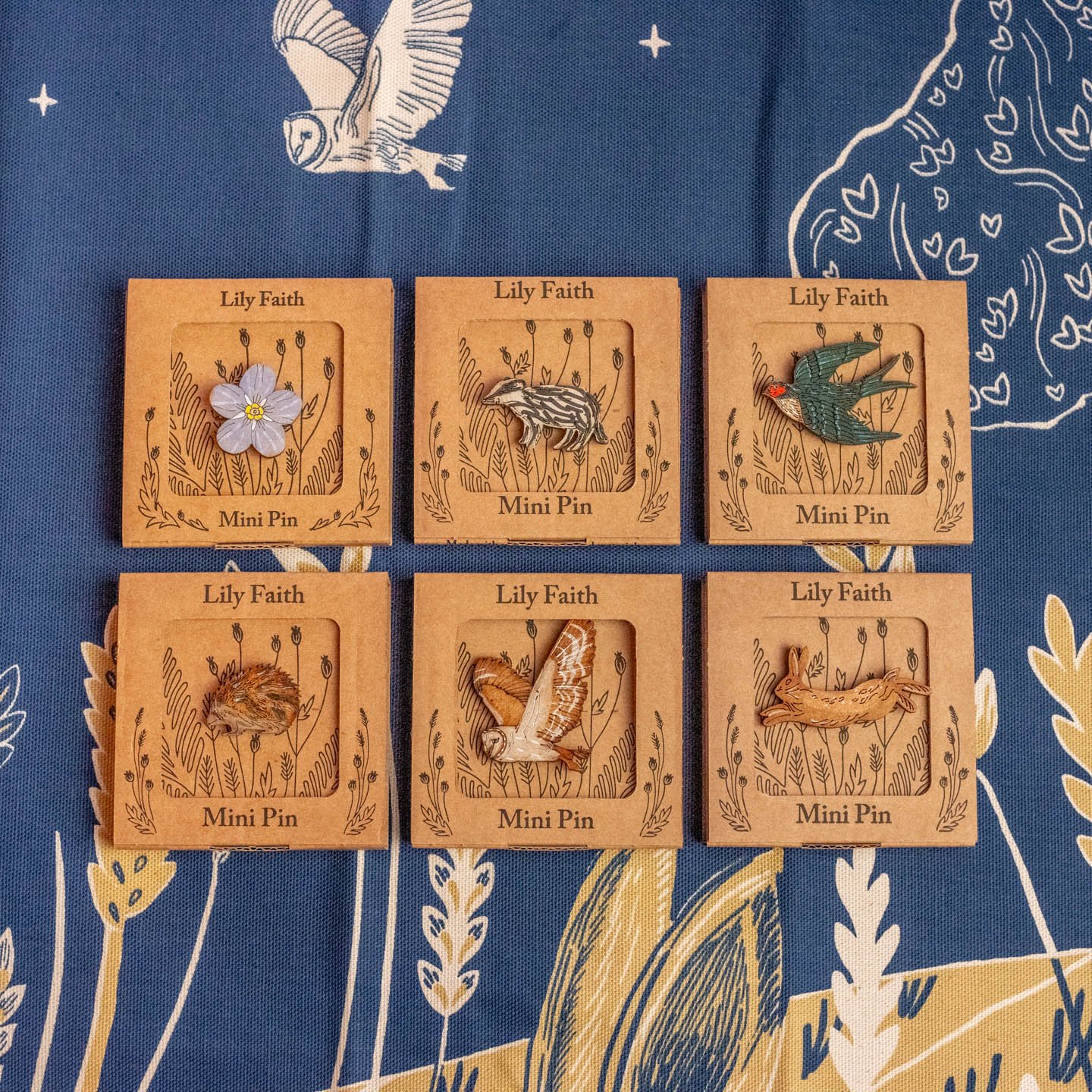 Wooden Animal Brooches by Lily Faith, made in the UK & inspired by native British flora & fauna.